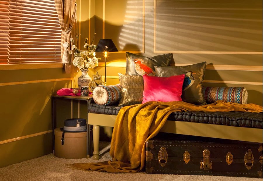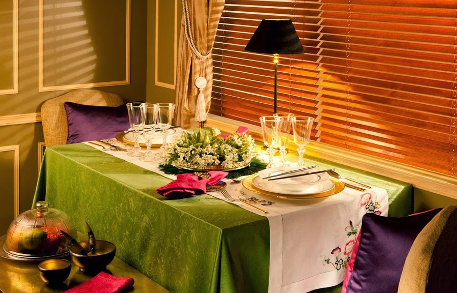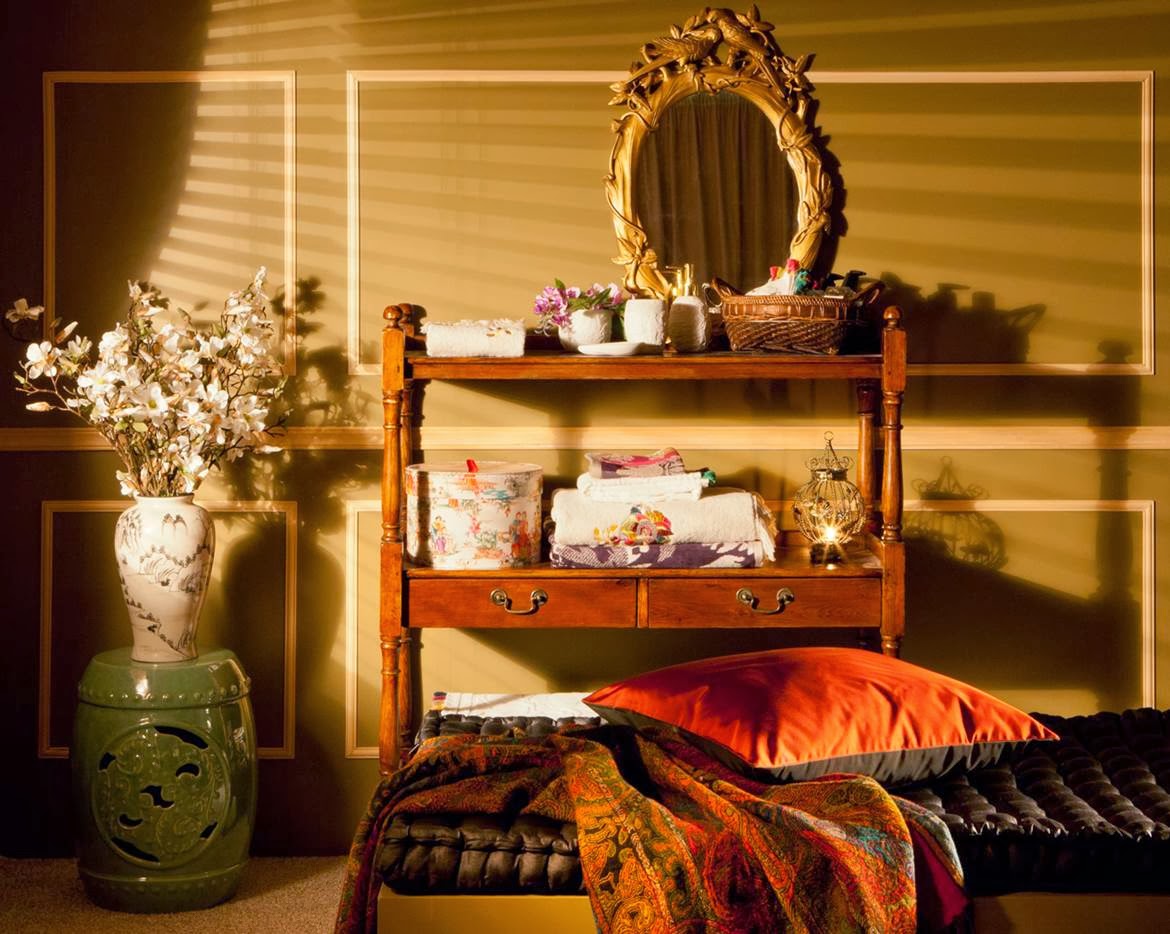 Para el dormitorio ricos textiles, mantas y cojines, en los que resalta el brillo y el oro viejo. Para el comedor manteles lisos o estampados, combinando igualmente el oro viejo con otros tonos, bandejas lacadas, platos con dibujos.....Además de portarretratos, figuras de guerreros, budas.....¿Te animas a transformar alguna estancia de tu casa en el Lejano Oriente?.