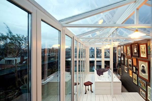 Como guinda, la zona de spa en la azotea, totalmente acristalada y "abierta" al cielo de Rotterdam.