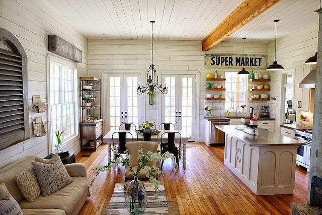 Un casa de granjeros en la que no podía faltar una gran cocina eso si, bien distribuida y a la que no le falta ni un detalle. Comenzando por aquí y siguiendo el recorrido por el resto de la casa se puede decir que es casi una casa de las que sólo se ven en las películas.