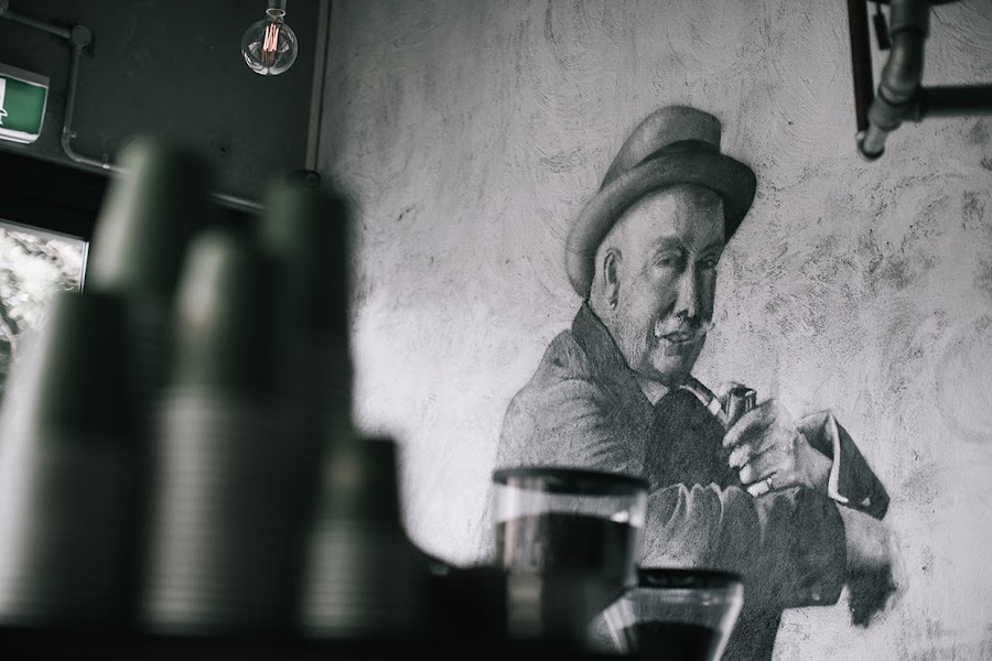 Los creativos de Korolos Ibrahim fueron contratados para diseñar el branding de este café de Sidney y cuando se pusieron manos a la obra quisieron plasmar una estética actual, industrial, seria y masculina pero sobre todo una estética que deje un sabor de boca añejo en sus clientes. El sabor añejo lo han conseguido transmitir al local contratando a un artista que plasmó en la pared de la entrada una fotografía de dos señores fumando pipa en una cafetería en la época de la ley seca australiana.