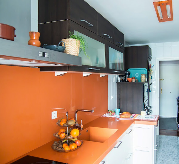 La primera vez que entré en ella me impacto hasta dejarme sin palabras, el naranja es una decisión...digamos arriesgada. Cuando elegimos este tipo de colores para diseñar una cocina de este tipo es mejor ser un poco más prudentes una cocina no se cambia cada varios años como podemos pintar una estancia de la casa.