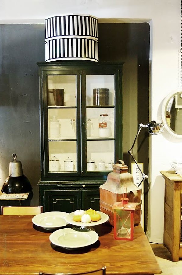 Me encantó esta alacena rematada por gigantes sombrereras de