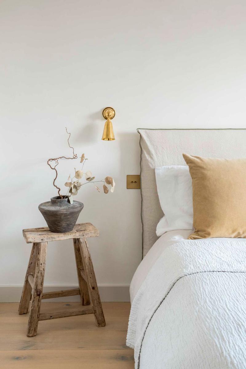 Este dormitorio no puede transmitir más calma, vestido con lino, madera natural y colores neutros, hacen de esta estancia, un remanso de paz.