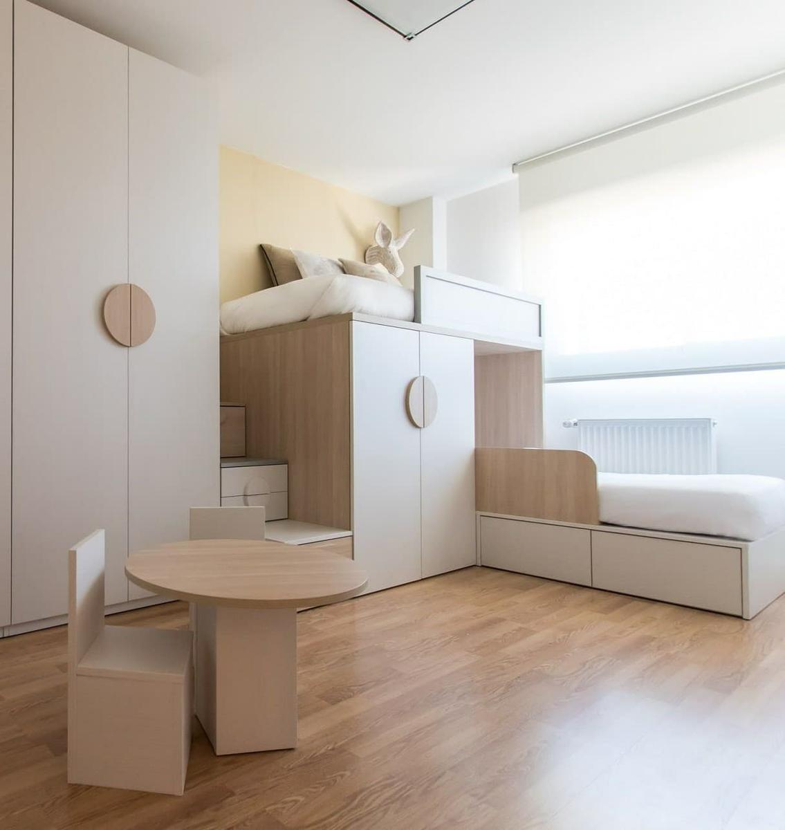 Si también estás cansado/a de colocar los muebles, como toda la vida. Las literas en una misma pared y al lado, el armario, sin más…Paso a enseñarte, como con los muebles hechos a medida, puedes realizar verdades composiciones, de lo más creativas, divertidas y originales.