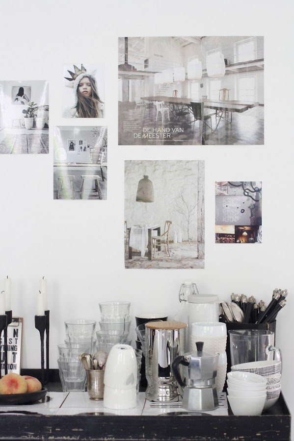 Quizás te ocurra como a mí que soy una cafetera con piernas...si cafetera con piernas,cada mañana no soy persona hasta que no bebo ms dos o tres taza de café.,como trabajo desde casa me siento en le salón donde me he creado un rincón con mis tazas de café ,vasos,cucharas y algunas fotos que me inspiran para crear...buena idea ¿no?