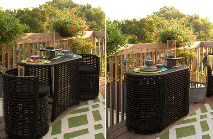 Como veis las mesas plegables sin patas son las más útiles, el material y tamaño de la misma, ya dependerá de vuestro gusto y necesidades. A mí me gusta especialmente la de hierro y vidrio, y lo combinaría con los clásicos taburetes de plástico setenteros en rosa cuarzo (podéis encontrarlos en Hábitat)