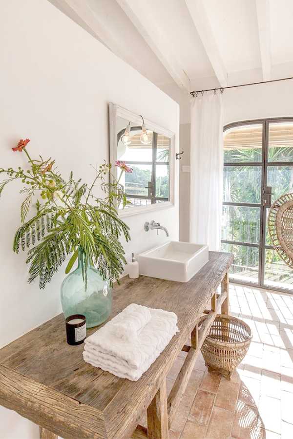 Hoy toca dejarnos llevar por esos baños con un toque bohemios y muy chic, típicos de ambientes de sol y playa como Baleares y como Canarias ;-) Esos baños creados con materiales del entorno, envejecidos y con historia, puertas usadas y reutilizadas y vegetación. Yo me apunto a este tipo de baños para zonas turísticas ya.