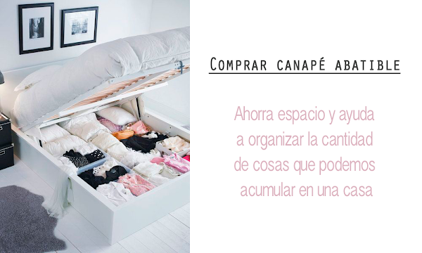 Comenzamos por el dormitorio, organizar el espacio de una habitación y de toda una casa en la que podemos llegar a almacenar una cantidad de cosas importantes y que nunca sabemos donde guardar, por eso, para mí una de los tips más importante es comprar un canapé abatible donde podremos guardar muchísimas cosas y nos reducirá mucho el espacio en casa, para mí es mueble fundamental en cualquier hogar a la hora de reducir mucho el espacio.
