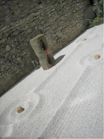 Tiene un patio interior , con decoración japonesa que es taaan relajante...