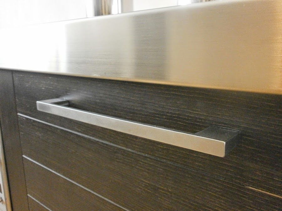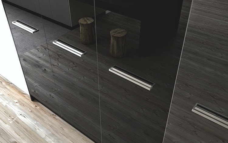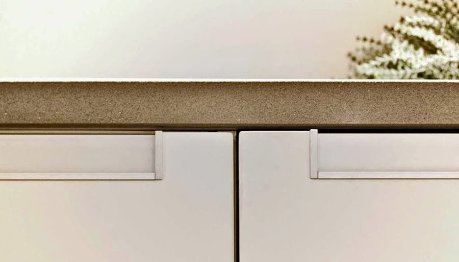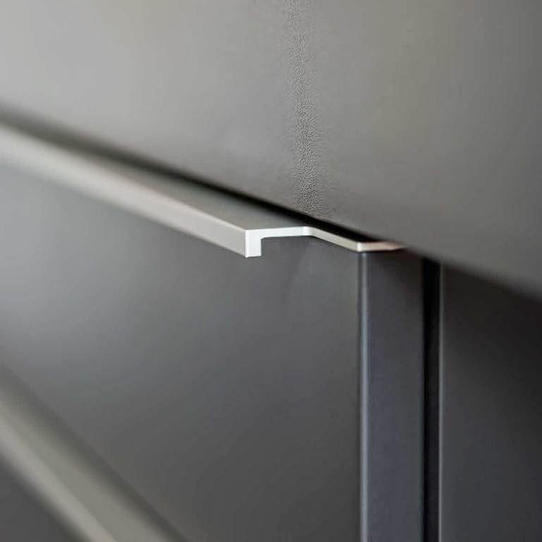 Tirador rectangular embutido en el canto. Discreto y exclusivo.