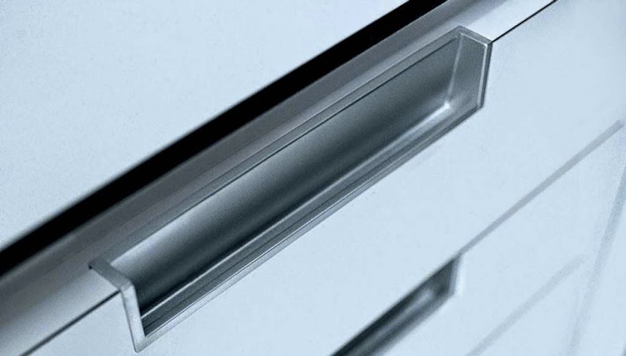 Un muy discreto tirador que se coloca en el canto de las puertas para modelos minimalistas y modernos.