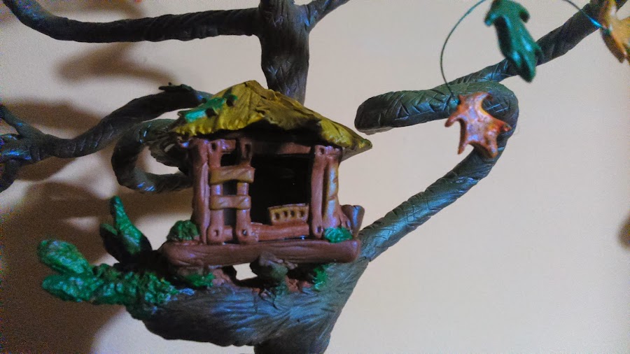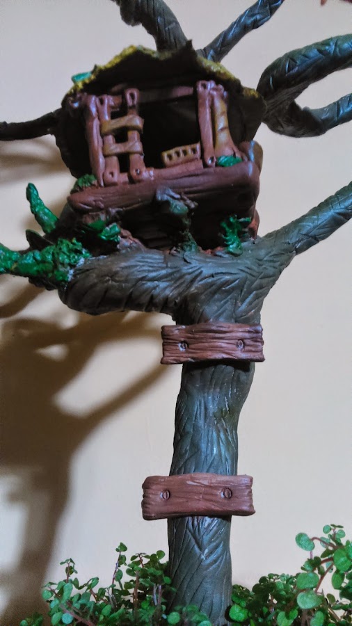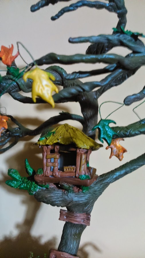 La casa la modele a parte con tiras de masilla. el pitado es en acrílico dándole tonos algo otoñales.