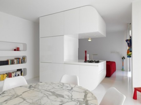 Dentro de un apartamento podemos incluir diversos trucos que nos permitan optimizar el espacio, como por ejemplo crear un diseño del tipo fundido encadenado, en el cual el comedor reúne elementos del dormitorio y de la cocina, creando de esta forma una conjunción armónica de los diferentes elementos.