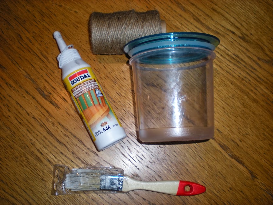 1. Recipiente de las medidas que queramos, puede ser un macetero, un cuenco, un bol para los lapiceros...lo que queráis en mi caso me iba bien este táper.