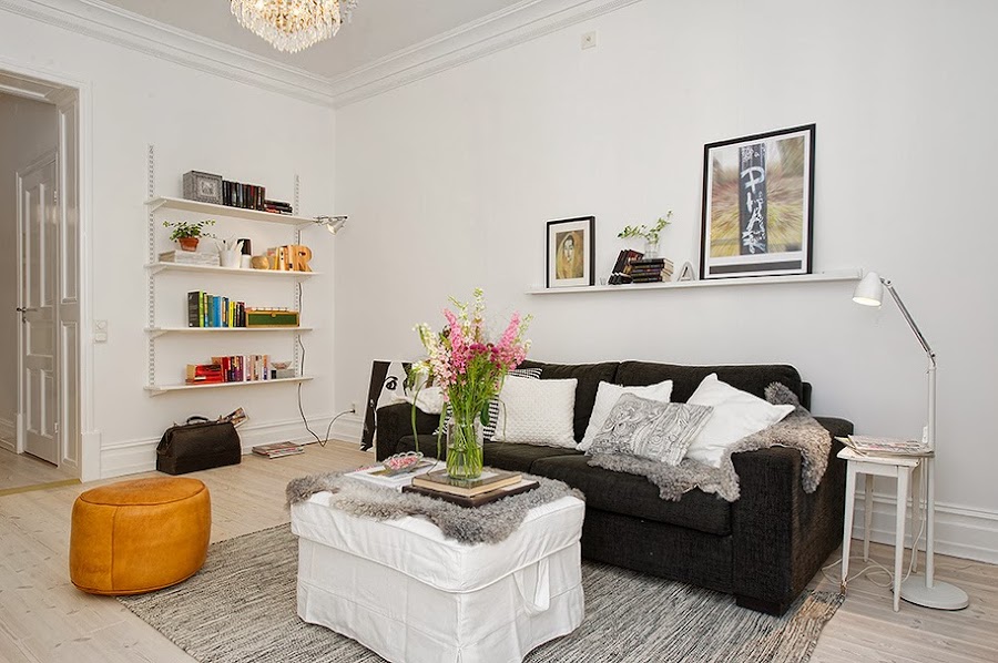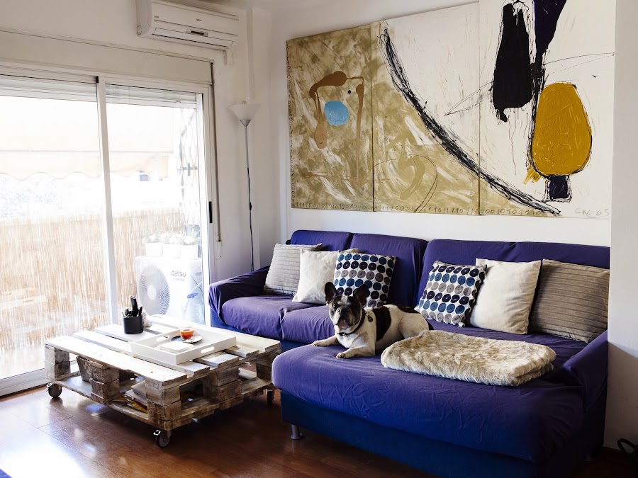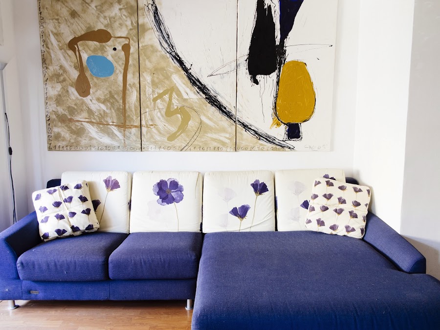 El sofá que venia con el piso para mi gusto es horrible, lo siento, pero no me gusta nada y aparte de que tengo un perro, lo he intentado arreglar con una funda para el sofá. El segundo inconveniente, es de color azul pero eso lo resolveré con cojines claros para aportar luz, ahora mismo hay un mezcladillo en azules, grises y blancos que no se todavía si dejare o modificare, porque para que veáis el nórdico no siempre tiene que ir asociado con blanco, también podemos jugar con otros colores.