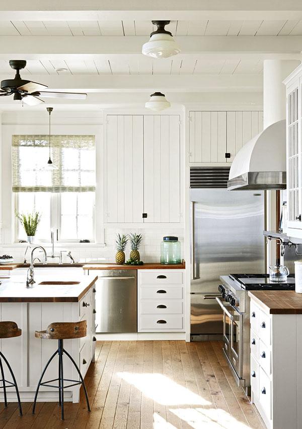 Por eso, si quieres aportar calidez a una cocina un tanto fría, debes elegir luces cálidas de color neutro (mejor que blanca). Y también has de ocuparte de que no falte la luz. Apuesta por una iluminación abundante, con lámparas de techo que proporcionen luz general, y sistemas para iluminar las zonas de trabajo o de comedor.
