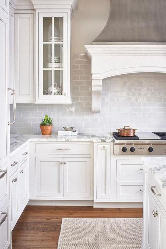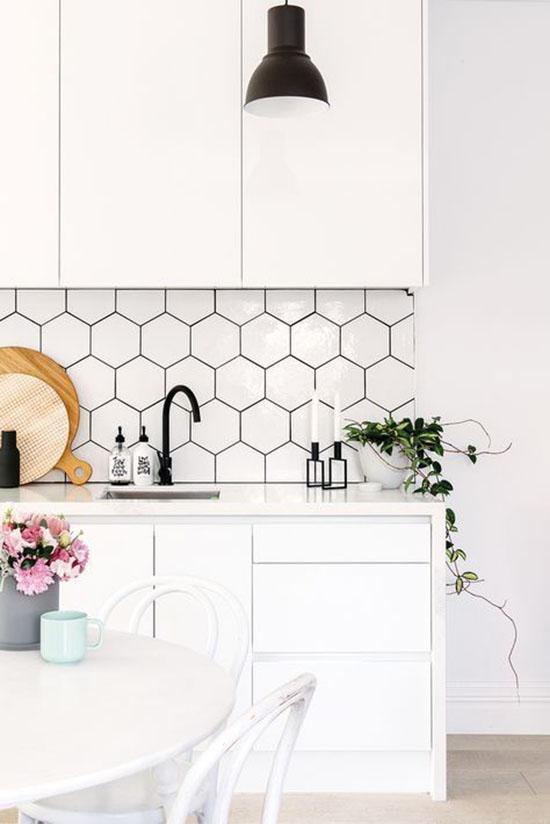 Fuente: Decoholic Pero, ¿cómo lograrlo en una cocina total white? Es posible si combinas materiales en las diferentes superficies creando, por ejemplo, una pared de azulejos de tipo metro, o con un patrón, forma o acabado diferente.