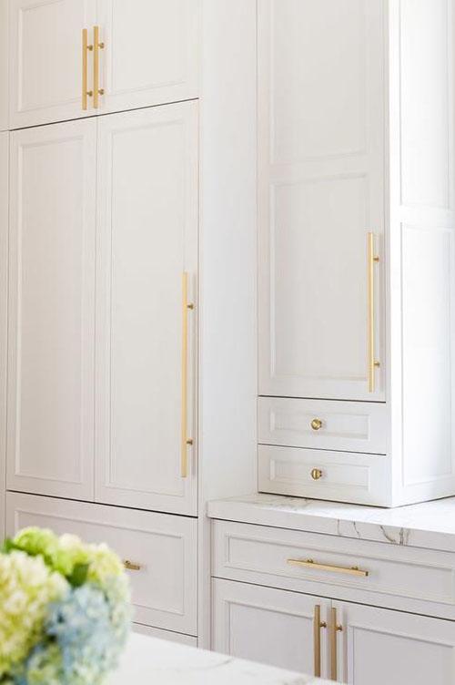En lo que se refiere a los tiradores de los armarios de la cocina, ni te imaginas lo mucho que puede cambiar el ambiente general del espacio, sustituyendo únicamente estos accesorios. Una idea para aportar calidez a una cocina blanca es colocar unos tiradores dorados de latón. Además de ser más acogedor, el ambiente ganará en elegancia.