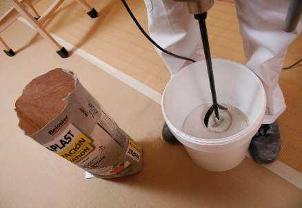 Para comenzar, mezclaremos dos partes del producto en polvo por una de agua. Esto significa que si utilizásemos un kilo de Aguaplast Renovación necesitaríamos mezclarlo con medio litro de agua. Posteriormente podemos aumentar esta cantidad según nuestras necesidades, añadiendo más producto con su equivalente en agua y volviéndolo a amasar.