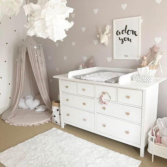 En toda habitación de bebé se necesita un lugar para poder cambiarlo y vestirlo de manera cómoda. Para eso, como mínimo, nos hace falta un cambiador y una cómoda. Así podremos guardar toda la ropa y los elementos necesarios muy cerca del lugar dónde lo vamos a necesitar.