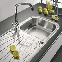 Un fregadero no sería nada sin el grifo, y si el modelo de fregadero que hemos elegido es de una cubeta con escurridor, tendremos que decidir a que mano estará el escurridor para posicionar el grifo a un lado u otro del fondo del fregadero. Si el fregadero es bajo encimera, el grifo se instalará en la propia encimera y en diseños de cocinas rústicas, podemos instalar el grifo en la pared.