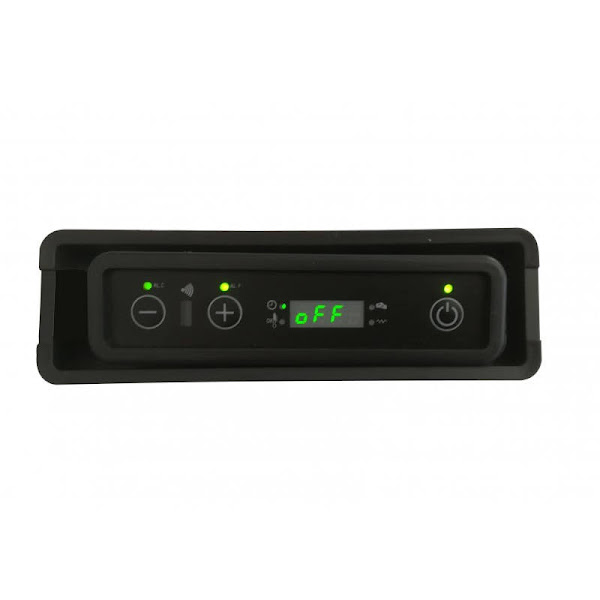 Desde el display de encendido puedes manejar la temperatura y la potencia que puedes regular de 1 hasta 5 . Se entiende que en el 1 consume menos y en el 5 consume más .