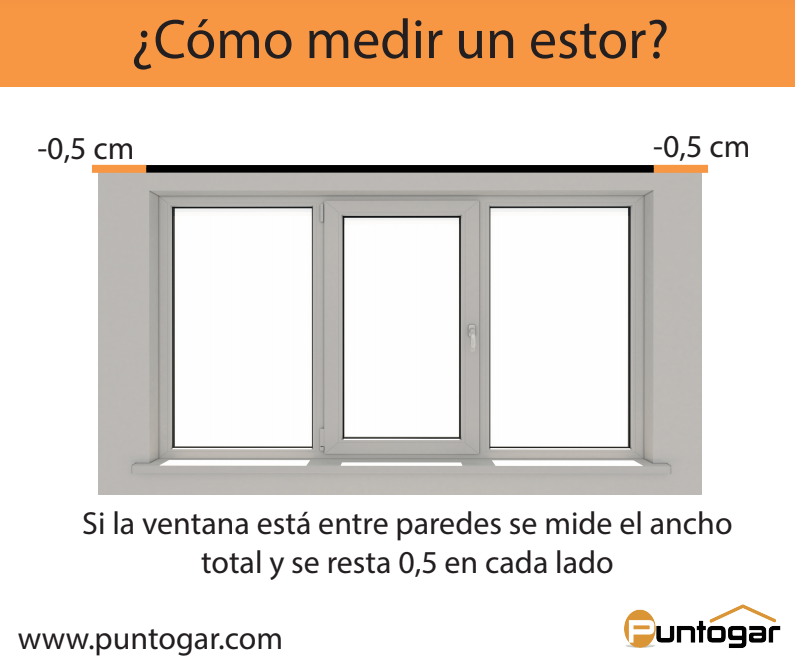 - Si se da la circunstancia de que la ventana se encuentra ubicada entre paredes, tienes que medir el ancho total y restar 0,5 cm de cada lado.