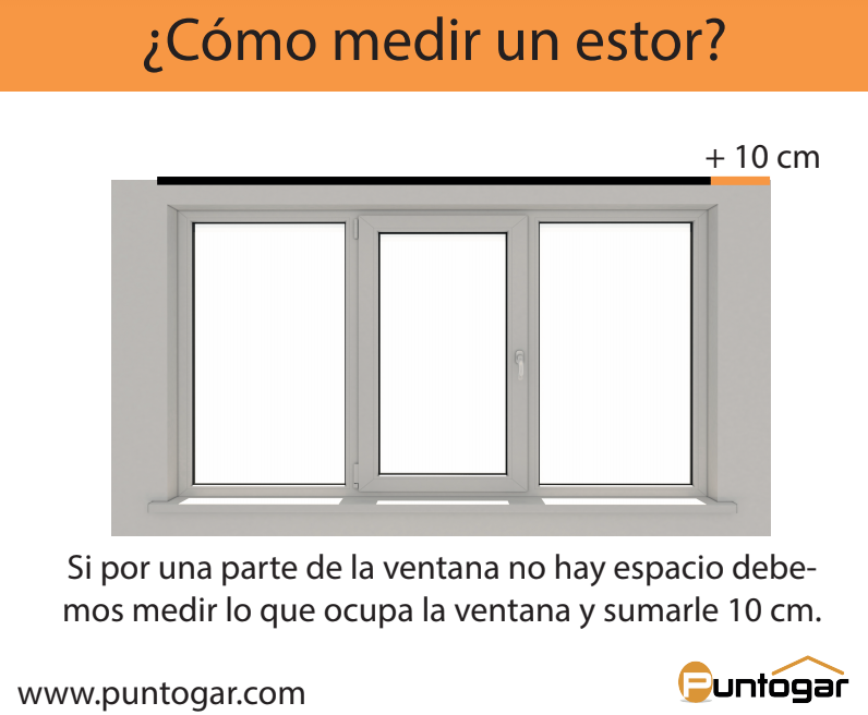 - En el caso de que en una parte de la ventana no haya espacio, entonces hay que medir lo que ocupa la ventana y añadirle 10 cm.