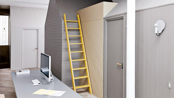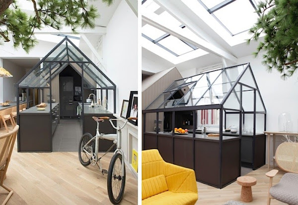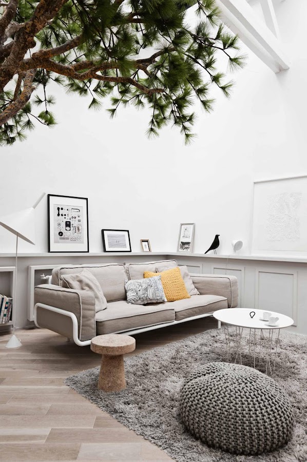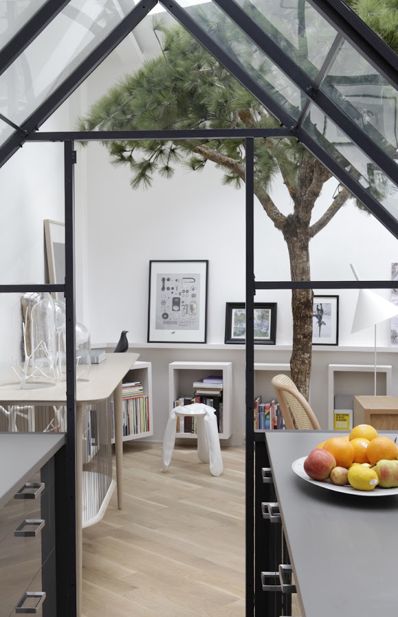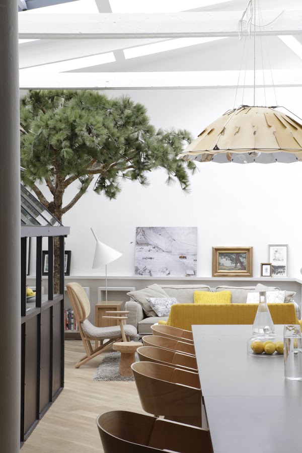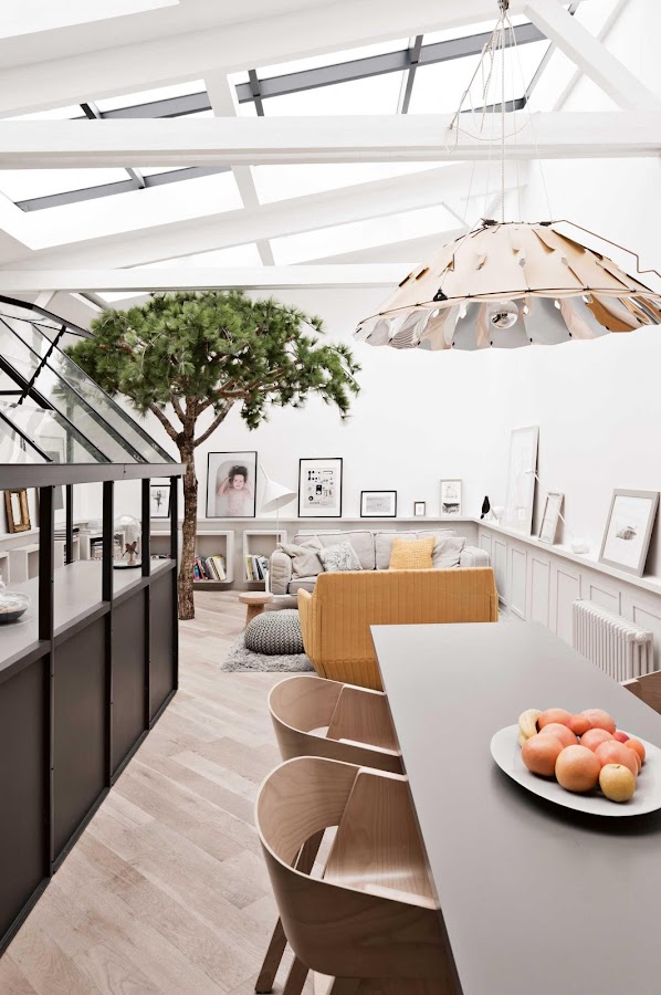 Si, habéis oído bien... UN ARBOL... Y no hablamos de uno replantado en un macetero, sino más bien, de uno, que reclama compartir espacio en el suelo con los habitantes de esta peculiar vivienda en París, diseñada por el arquitecto de interiores Gregoire De Lafforest