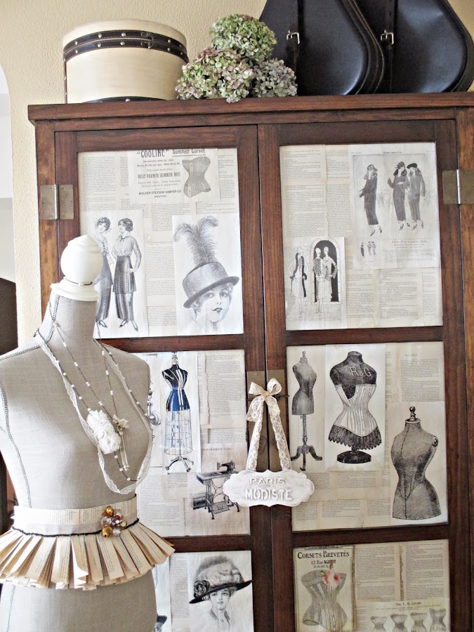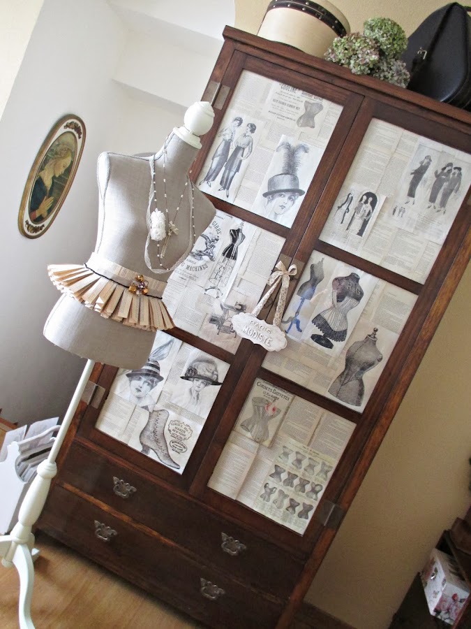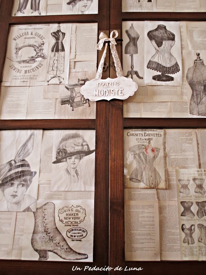 Sombreros muy chic, maniquíes, corsets, patrones, guapas modelos, carteles de perfumerías..... se codeaban a las puertas de mi armario,