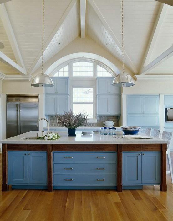Hoy voy a ponerte una selección de diversas cocinas azules. ¿Y por qué el azul? Pues no sé, algo vi navegando por ahí que pensé: "vaya, parece ser que el siguiente color favorito va a ser el azul... pues vale, haré lo de siempre, buscar cocinas en ese color". Y eso hice.