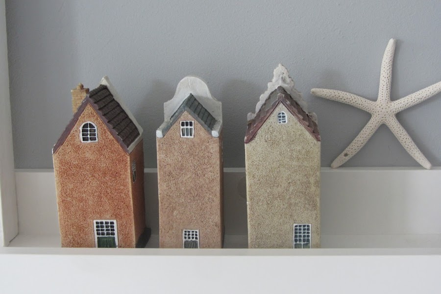 En la Balda lucen tres casitas, algunos marcos en blanco, una estrella de mar y unas bolas de hilo.
