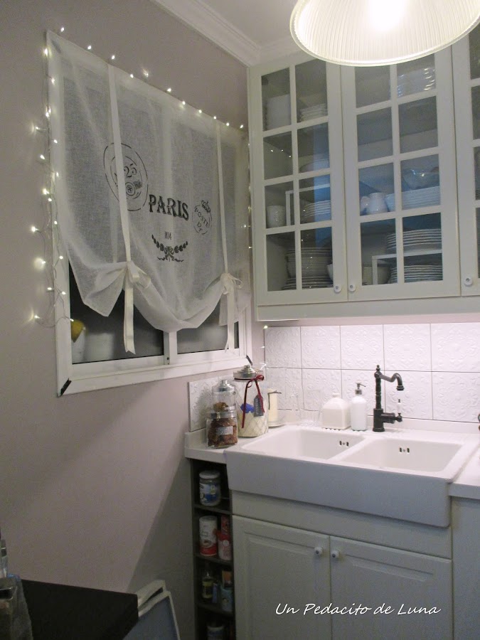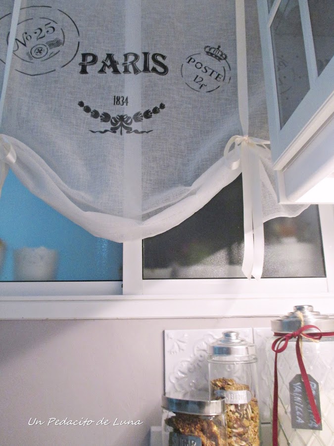 Así que por pesada, pesadíiiiisima, me tocó hacer mi cortina para la cocina a mano,