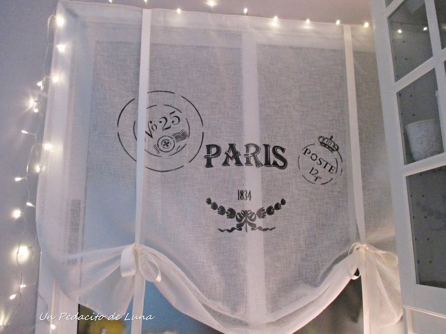 Con unas plantillas de la colección de Momentos Vintage que fui entremezclando, me procuré un dibujo adecuado al tamaño de la cortina, algo sencillo que le dio un toque especial, justo lo que quería.