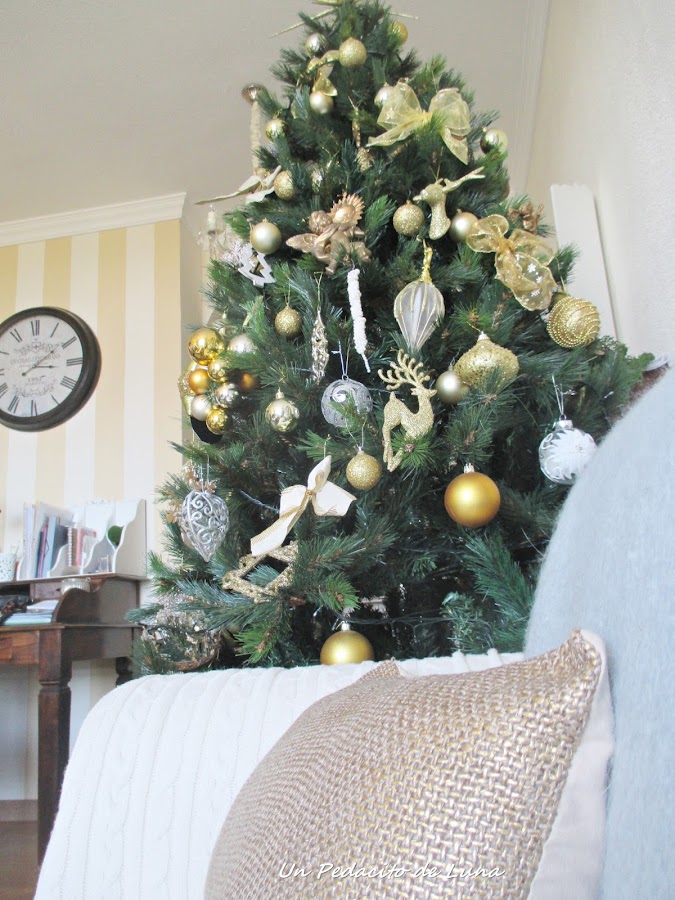 El árbol se erige en protagonista de la estancia ya con su estrella coronándolo.