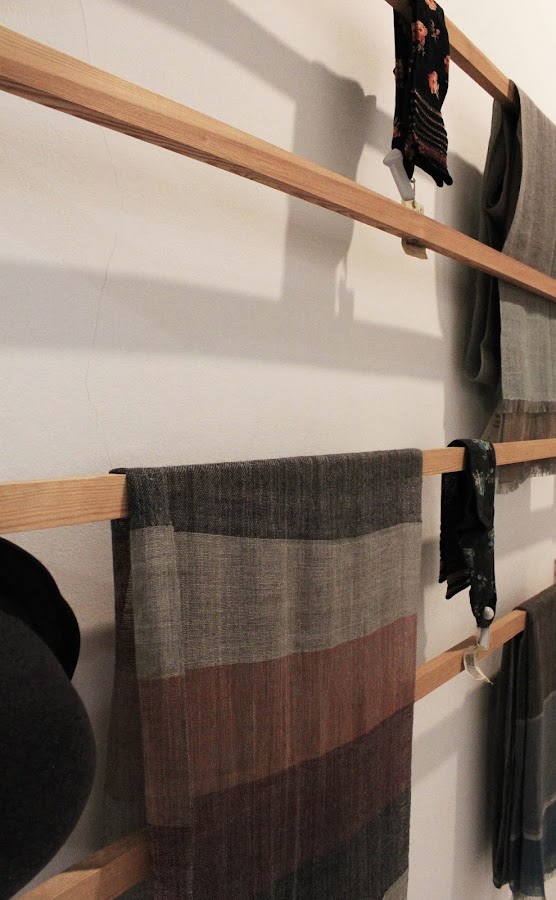 They look for inspiration in the north of Europe and they got really good ideas. As you can see is a space basically white where light up the wooden slats that make everything like doors, tables and the structure for hang the clothes. Light up as well the old elements that they have keep.