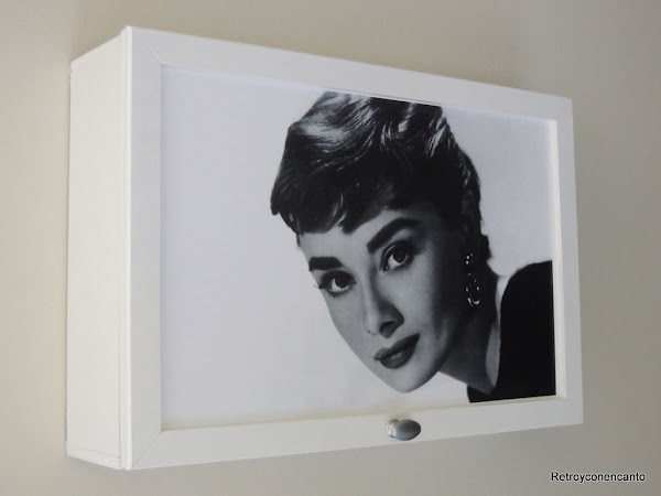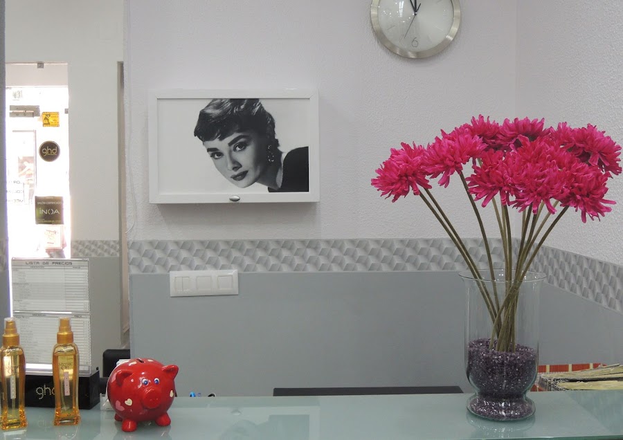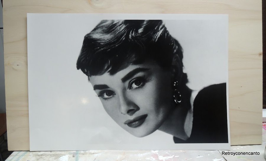 Buscamos por la red, para enmarcar, una imagen que diera el aire glamouroso que todo centro de belleza se precia por tener, y para nosotras Audrey es el colmo del "très chic". Guapa, ¿eh? Por supuesto, nos la imprimieron en una copistería especializada, en papel fotográfico y al tamaño necesario.