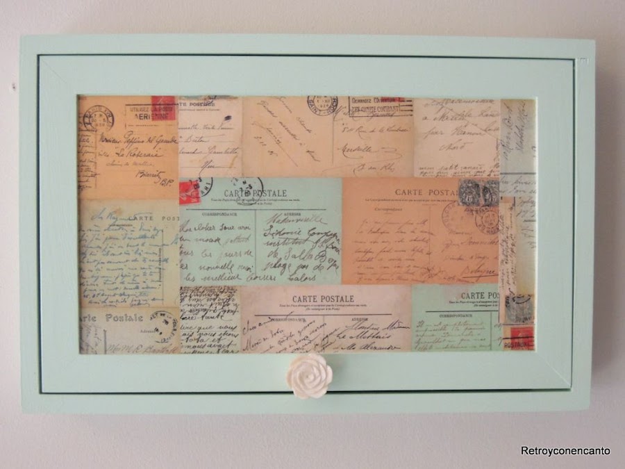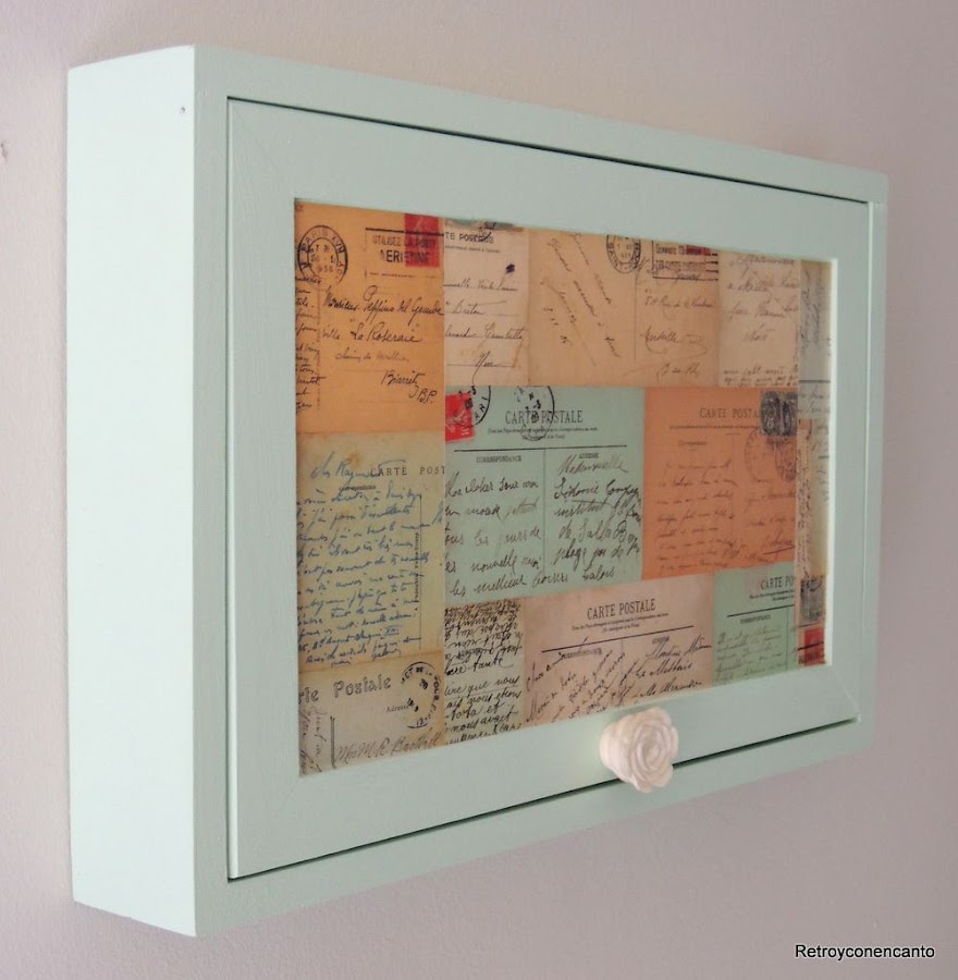 Y aunque no hemos hecho fotos del proceso, para no ser repetitivas, aquí os mostramos el encargo de otra clienta para la entrada de su casa, con decoupage en la tapa.