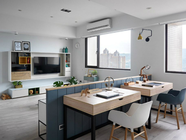 Cuando no se tiene mucho tiempo ni sitio para realizar las tareas domésticas, un área conjunta y funcional de cocina, lavadero y oficina es una estupenda opción. Este diseño de Darren Genner de Minosa Design, incluye además, una mesa para comer diario con lo que se completa una estancia donde se aprovecha al máximo el espacio. Como pasa en muchas viviendas pequeñas, es necesario usar la superfici ...