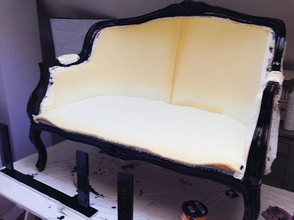 He pensado en el color negro para pintar la madera y terciopelo blanco para tapizar, la idea ya está, así que manos a la obra.