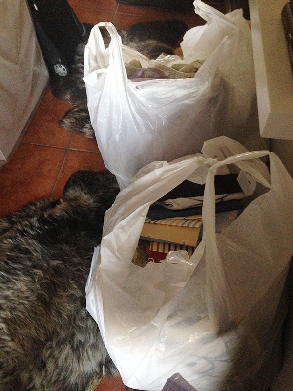Ya os comenté ( aquí ) que lo primero que hice es limpieza de muestrarios. He seleccionado telita por telita, muestrario por muestrario, lo que vale y lo que ya no se fabrica, he metido todo en las bolsas y a la basura!!