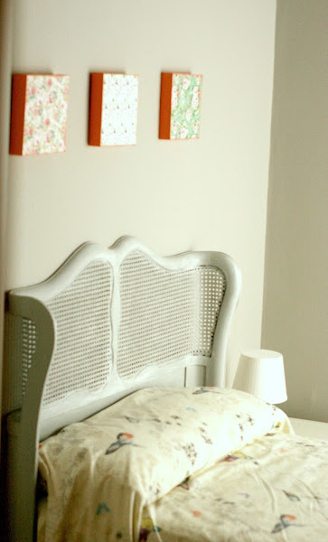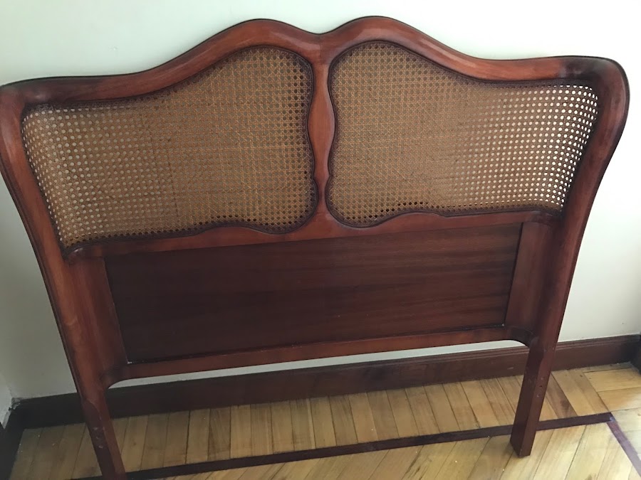 Para la segunda habitación recuperamos un cabecero de la casa de rejilla, pintándolo de gris con un barrido en blanco. Este es al Antes de la habitación y del cabecero.