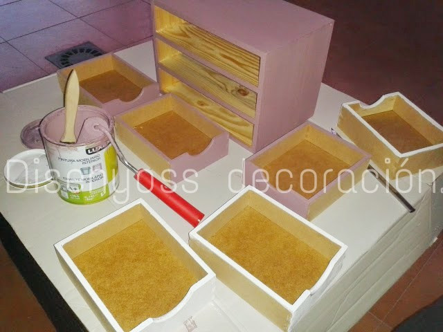 Aproveché para pintar una pequeña cajonera de madera natural con el mismo color.