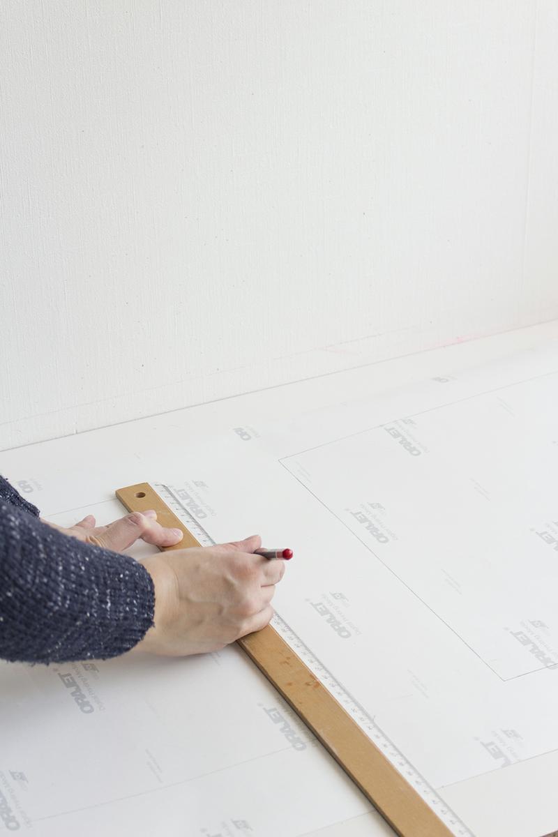 Lo primero que haremos será marcar las medidas. Yo siempre añado 1 cm de más para dejar algo de margen por si al cortar no me sale el corte recto.