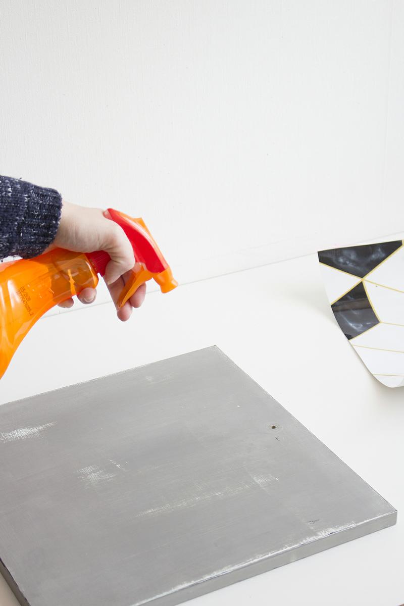 Una vez tenemos el vinilo cortado mojamos la superficie con agua y un pulverizador y colocamos el vinilo ajustándolo bien.