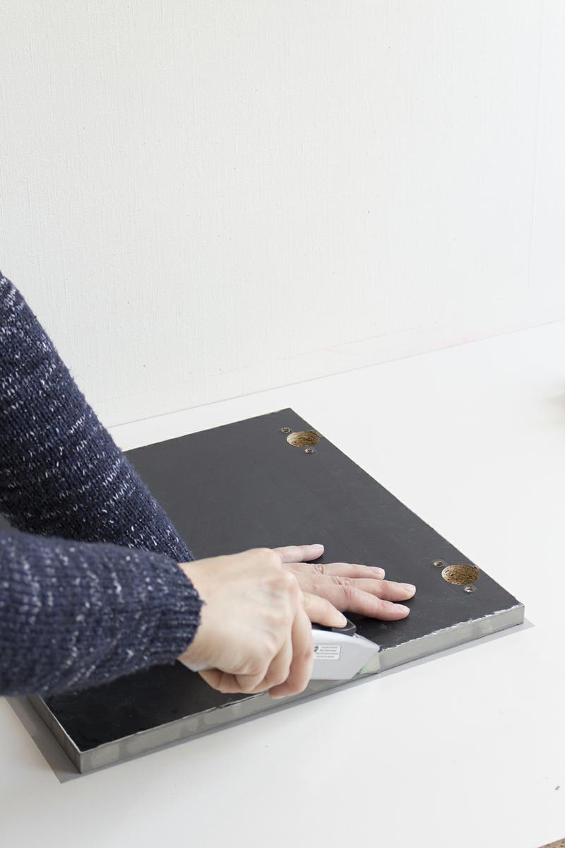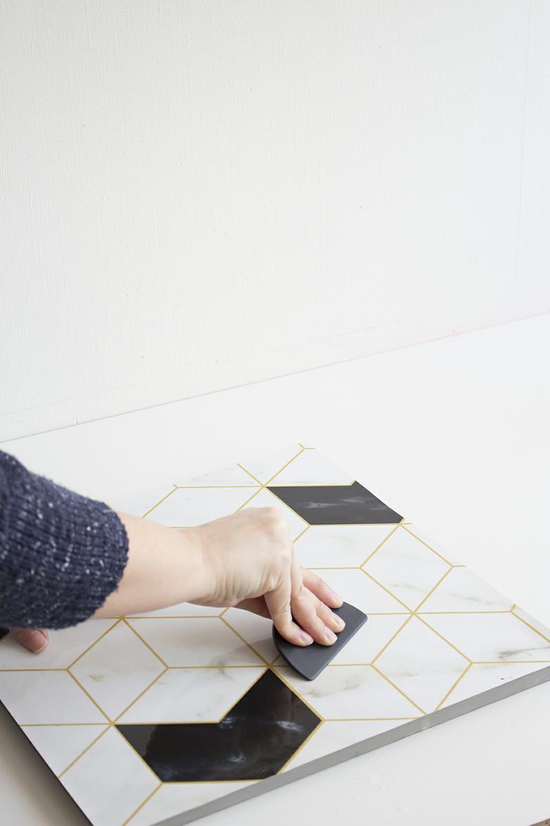 Cuando tengamos el vinilo bien colocado pasamos la espátula para eliminar cualquier burbuja que nos haya podido quedar.