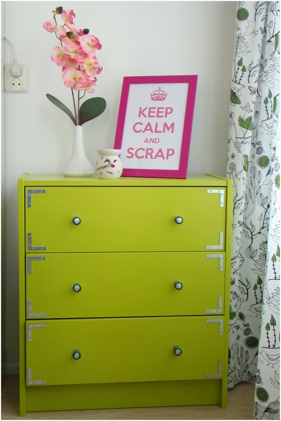 Ésta no es una cómoda Rast pero es su prima hermana y me pareció muy original y alegre. Así que aquell@s manitas que tengan buen pulso para pintar o con vinilos o stencil, seguro que pueden hacer el adorno en los cajones.