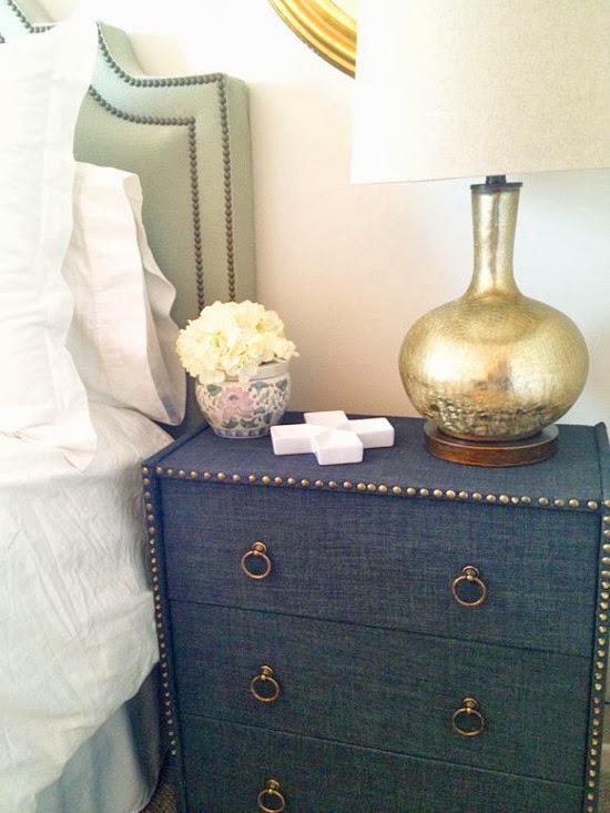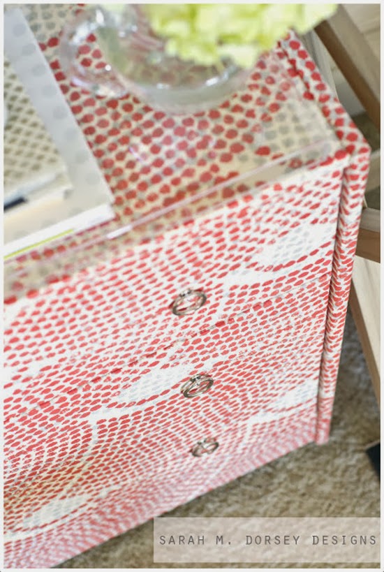 La opción de forrarla con una tela que nos guste, está muy muy bien. Cómo la cómoda viene desmontada sólo hay que ir forrando cada una de las piezas pegándola con adhesivo de montaje especial para tela o cola y después grapándola igual que cuando se tapizan las sillas. A ésta además se le han añadido unas ruedas que le dan el toque moderno.