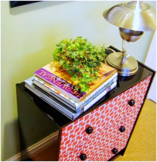 En este caso sólo se han forrado los cajones, el exterior se ha pintado en negro.