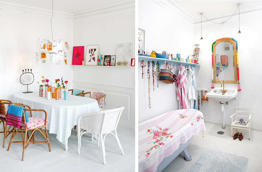 El comedor y el baño se han llenado de color con flores, adornos y objetos necesarios para la vida diaria que no se esconden.